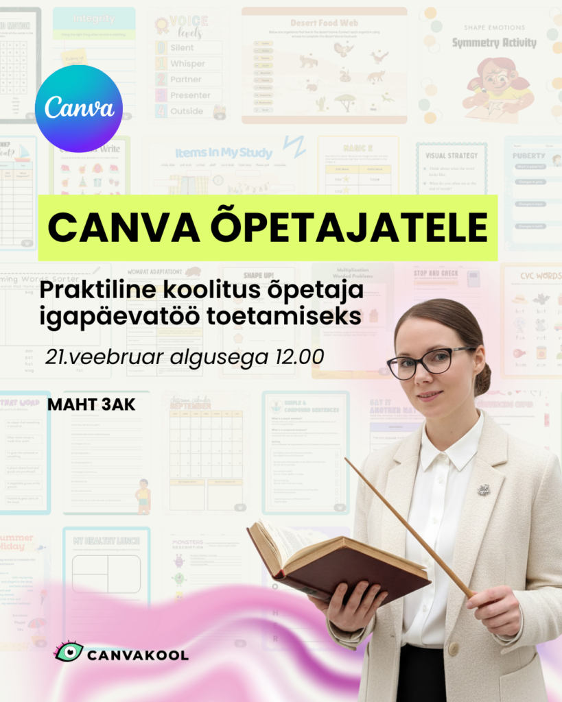 Juba 21. veebruaril toimub praktiline Canva koolitus õpetajatele, kus kaasame ka tegevõpetaja tutvustama õpetajakonto võimalusi ja päriselu kasutusnäiteid.